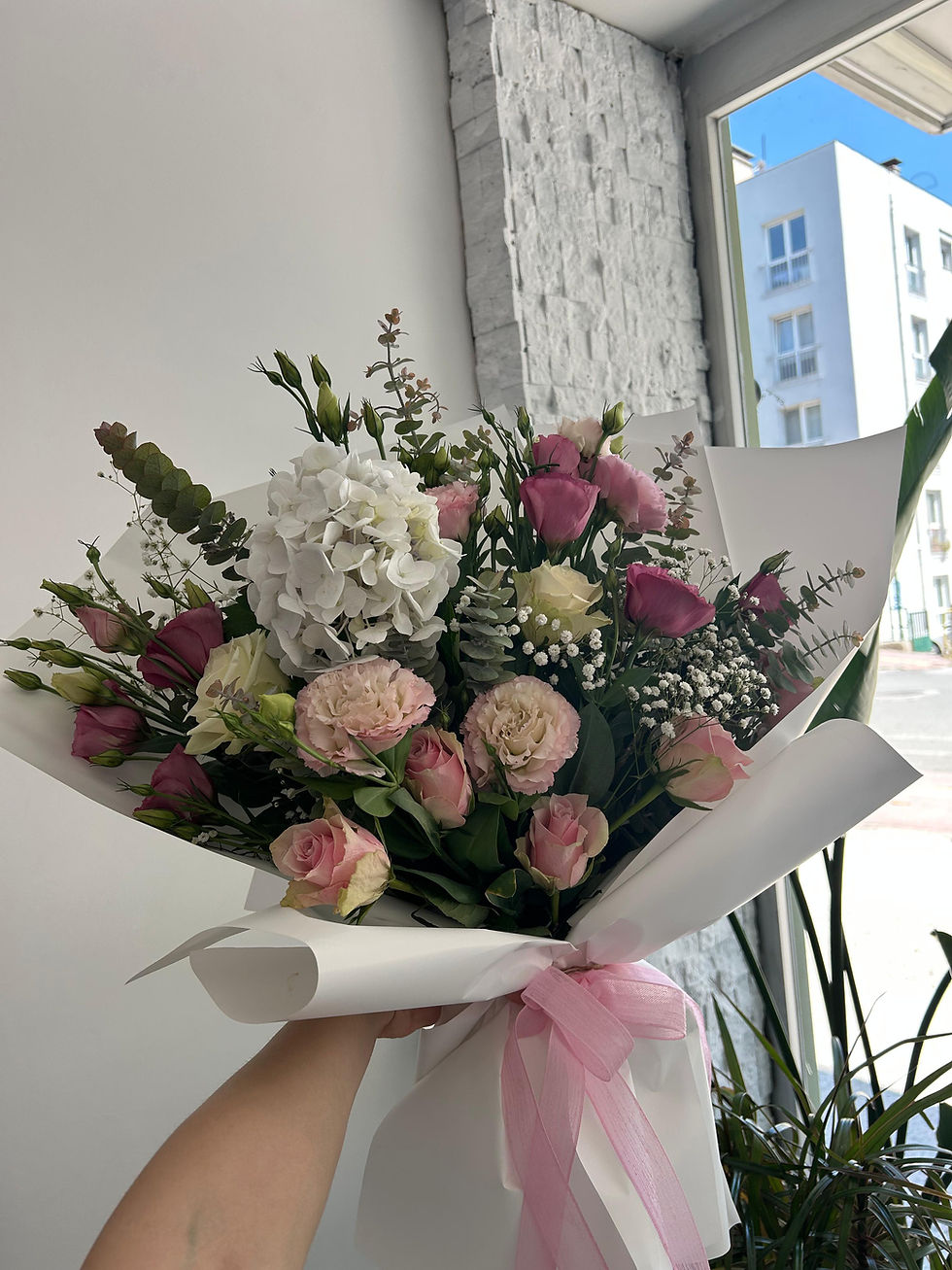 Mor Lisyantus ve Pembe Karanfil Buketi